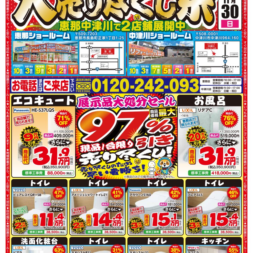 今回のチラシは大変お得な水廻り4点まるごとパックに加えて、